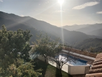 Plot of about 7.000 m2 of terraced orchard, wooded with a variety of fruit trees especially citrus, avocado, olive and fig trees. It has a swimming pool, patio with barbecue, enclosed courtyard with storage room. The house has 3 floors: semi-basement almost diaphanous and unfinished, about 140 m2 which is what the house has on the ground floor. Ground floor: kitchen, living room, 3 bedrooms, bathroom with bathtub and bathroom with shower. Upper floor of 100 m2: living room with fireplace, kitchen, two bedrooms and a bathroom. Can be separated or left together. Ready to live in or to rent. Rustic style with gas heating, cookers and fireplace. Wooden ceilings, terrazzo floors, wooden doors. Mains water and well shared with neighbour, mains electricity and solar accumulators for hot water, as well as hot water by gas boiler, with each floor having an independent one. Ample views of the valley. Good direct access from the village or via a short track from the main road.