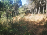 20,000 m flat plot, bordering a stream, has a spring for collecting natural water and also well water. Electricity. Pine forest, open plot located on a slightly elevated area, good views, and a surrounding area with several houses. Possibility of building according to current regulations. 70 m2 pool and a 72 m2 construction semi-underground.